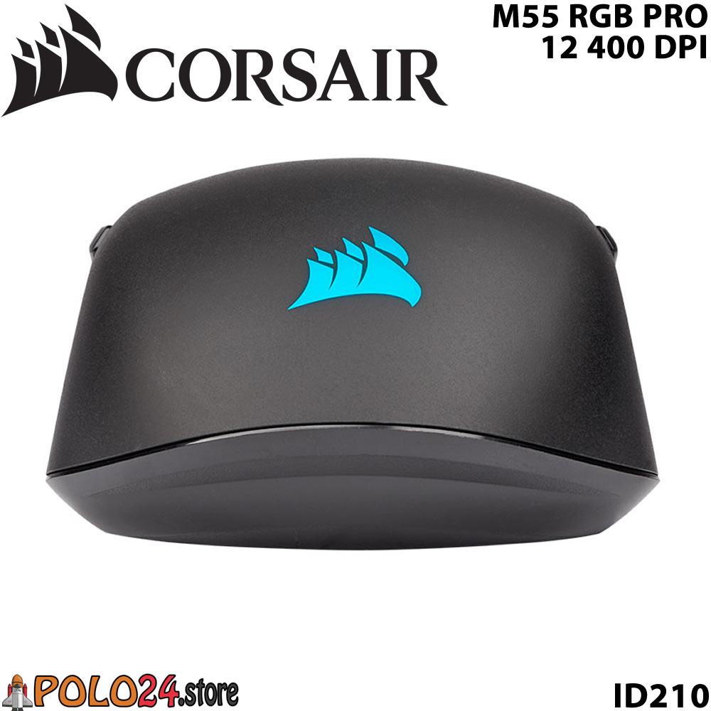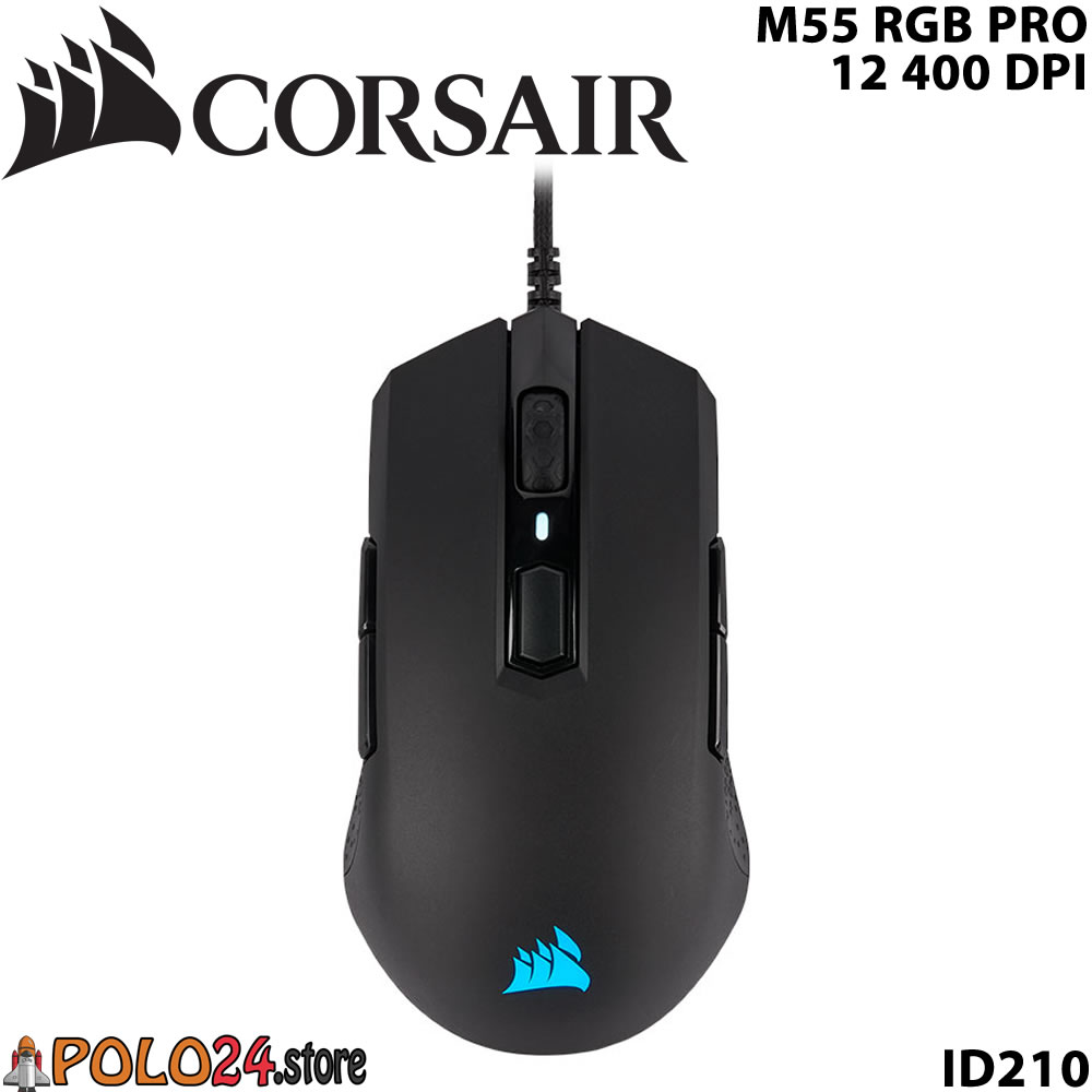Mouse óptico Gamer Corsair M55 RGB Pro, 12 400 dpi, USB, 8 botones, Negro.
